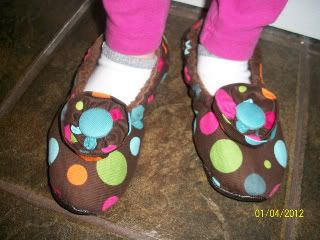 I made 5 pairs of slippers for Christmas! As I mentioned in my other post I forgot to take pictures!! I did however take a picture of some I made just the other day for my Mom:) They are not a purse but they are cute and I figured I would share!!